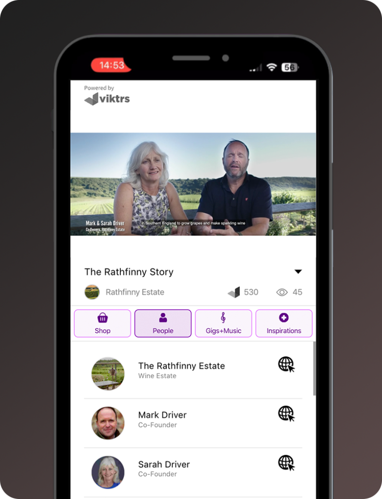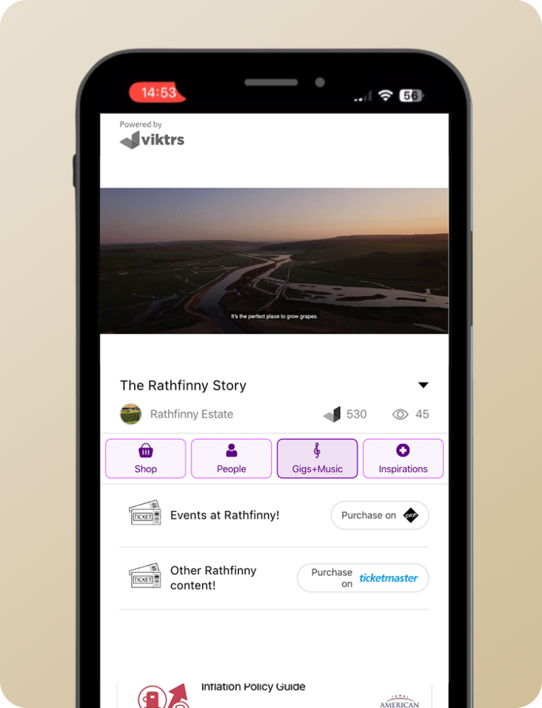 We integrate links to wines, events, and more, so customers can explore and engage while watching -generating real-time audience data insights.